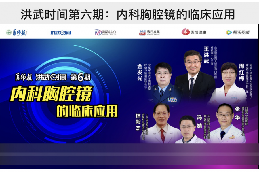由《醫(yī)師報·洪武時間》主辦的第六期以“內(nèi)科胸腔鏡的臨床應(yīng)用”為主題的直播,邀請了北京中醫(yī)藥大學(xué)附屬東直門醫(yī)院呼吸病中心主任王洪武教授、全軍呼吸內(nèi)科專科中心主任、空軍軍醫(yī)大學(xué)唐都醫(yī)院呼吸與危重癥科主任金發(fā)光教授等多位國內(nèi)知名專家出席直播并分享經(jīng)驗(yàn)。