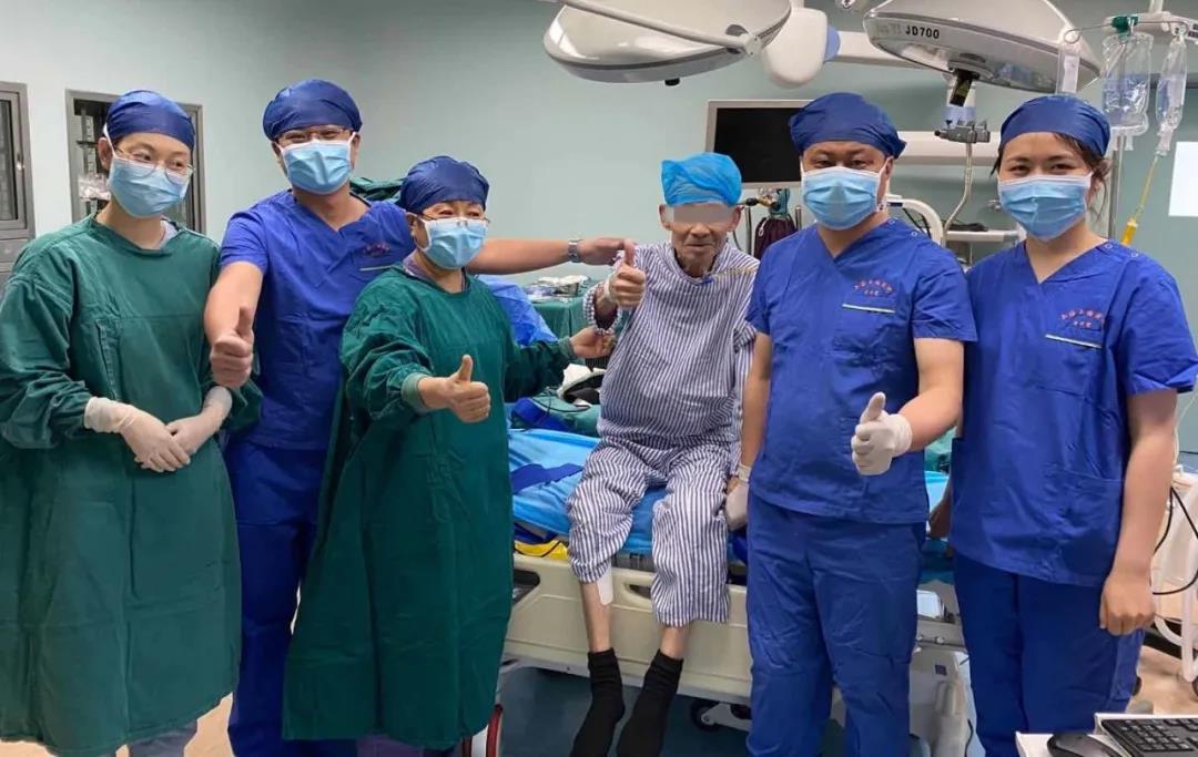 周紅梅教授團(tuán)隊為患者順利完成胸腔鏡手術(shù)后與患者合影
