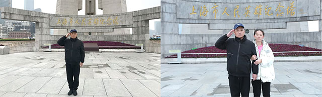 而在莫鋼廷的心里,卻始終有一個小遺憾。原來,多年前他和救援隊隊友第一次來到外灘時,由于人生地不熟加之停留時間倉促,最終未能前往人民英雄紀念塔。這個積存多年的小遺憾,在莫鋼廷大病初愈后得到了彌補。他和馮凰芬來到紀念塔前,鄭重地行了軍禮,瞻仰和懷念為解放上海而獻出生命的革命先烈們。隨后,莫鋼廷夫婦又來到外白渡橋前,這些建筑記載著多少滄桑、多少悲歡離合......