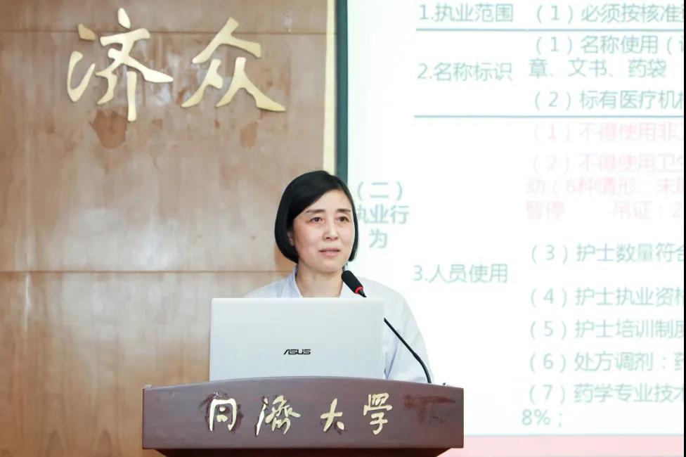 朱鳳鳴科長從依法執(zhí)業(yè)專項整治基本概念、整治背景、執(zhí)業(yè)要點、工作要求四個方面進行講解,并結合醫(yī)院實際情況進行分析探討。她指出,近年來,社會辦醫(yī)療蓬勃發(fā)展,相關政策出臺密集,依法執(zhí)業(yè)、依法行醫(yī)是醫(yī)療機構可持續(xù)發(fā)展的保證。她強調,要結合上海市開展的“白玉蘭專項行動”,做到自查自糾全覆蓋;對照標準建立詳細自查報告;按照院科兩級管理模式壓實責任,加強督查,抓實TQM考核,抓大不放小;不斷完善各項規(guī)章制度;嚴格依法執(zhí)業(yè),規(guī)范診療行為;加強日常管理和人員培訓,建立長效機制;全方位、多角度、深程度加強科室管理,推動醫(yī)院管理水平再上新臺階。