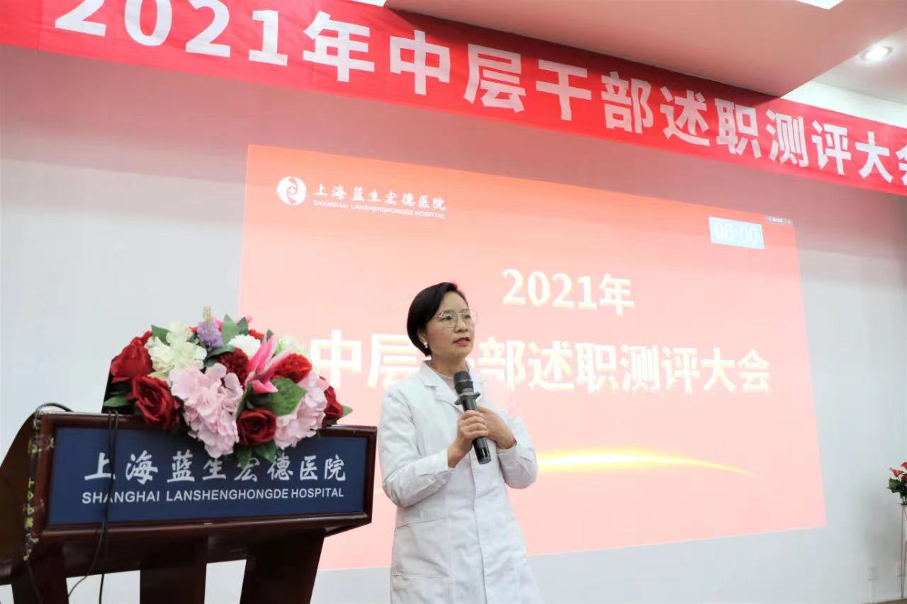 12月17日,公司旗下上海藍生宏德醫院舉行2021年度中層干部述職測評大會。醫院總經理林志強、院長周宏宇,副院長胡玉堂、程安龍、程平、韓懷忠,副總經理卓子羿及各病區主任和護士長、各科室主任等近40余人參加。公司醫療管理部護理總監凌云霞列席,副院長韓懷忠主持。