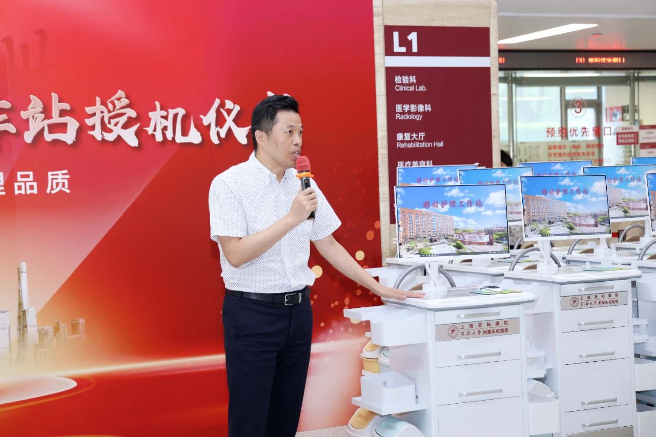 “移動(dòng)護(hù)理工作站走進(jìn)病區(qū)后,將極大地優(yōu)化護(hù)理工作流程。”蔡劍飛院長(zhǎng)在授機(jī)儀式上表示,智慧化工具的運(yùn)用不僅提升服務(wù)效率,保證護(hù)理安全,更能提升醫(yī)療服務(wù)的整體質(zhì)量。蔡院長(zhǎng)要求大家通過(guò)加強(qiáng)專項(xiàng)培訓(xùn)和實(shí)際操作,熟練掌握設(shè)備和軟件的應(yīng)用,提升專業(yè)水平,為患者提供更高質(zhì)量的護(hù)理服務(wù)。