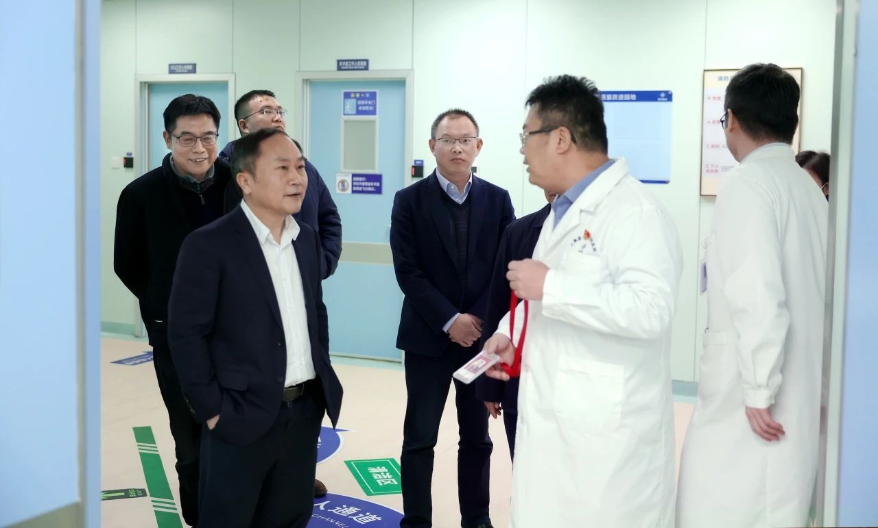 儀式結束后,張曉華教授一行在朱敏書記的帶領下,深入醫院手術室、9F重癥醫學科、康復醫學科、影像醫學科、高壓氧科、放療科等特色科室實地參觀,進一步加深對醫院的了解,并就醫院學科建設、人才培養、科研創新、醫療服務、醫院管理等方面內容進行了互動交流。