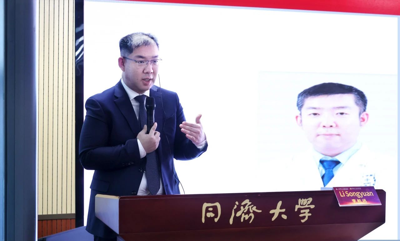 學(xué)術(shù)報告環(huán)節(jié),李松遠(yuǎn)博士率先作報告,介紹了他參與的由其導(dǎo)師主導(dǎo)的前沿課題項目“運用蛋白二硫異構(gòu)酶抑制劑桿菌肽設(shè)計新型抗膠質(zhì)瘤侵襲藥物”的試驗嘗試及研究進展,為臨床上膠質(zhì)瘤患者的治療提供新方向。