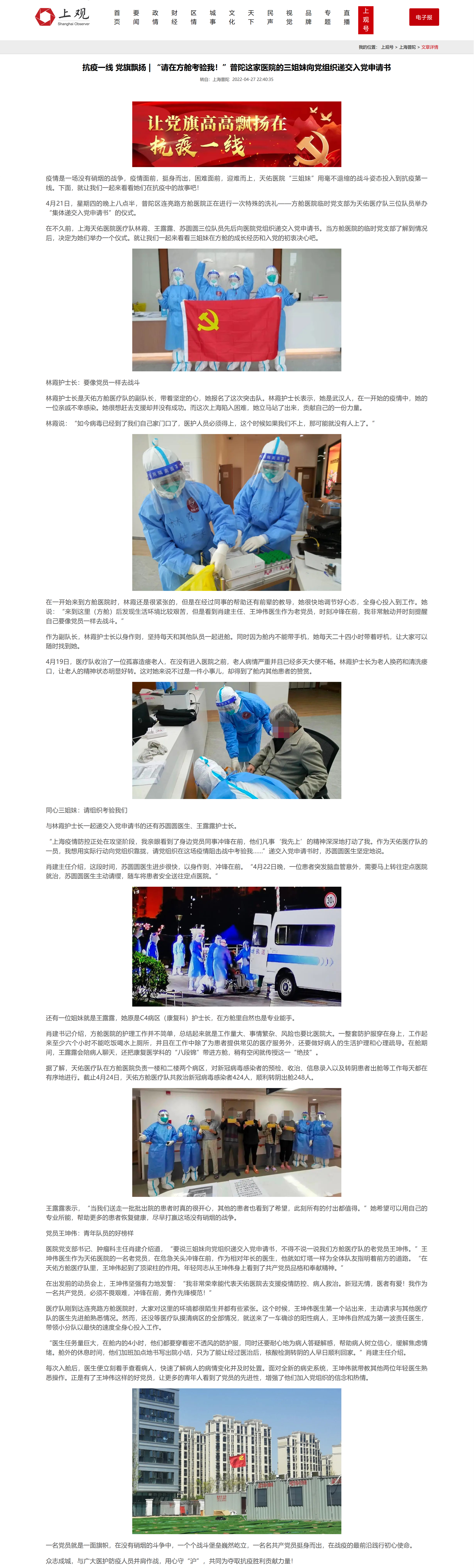 上觀新聞:“請在方艙考驗我!”普陀這家醫(yī)院的三姐妹向黨組織遞交入黨申請書