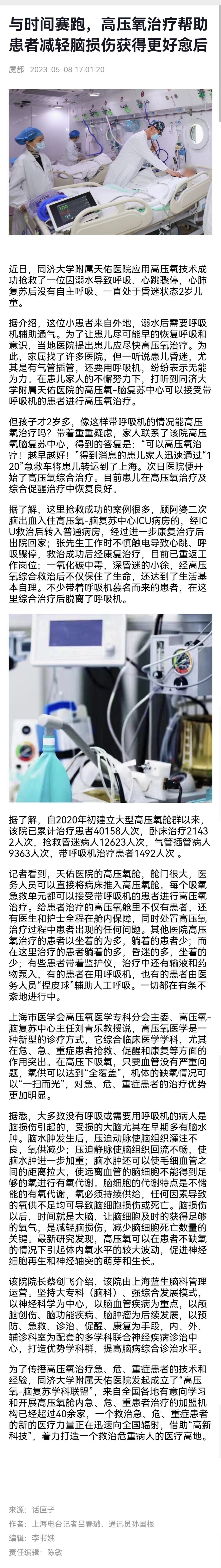 魔都話匣子:與時間賽跑,高壓氧治療幫助患者減輕腦損傷獲得更好愈后