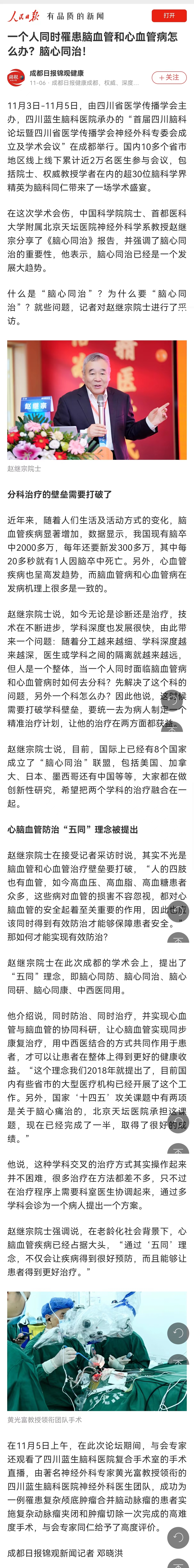 成都日報:一個人同時罹患腦血管和心血管病怎么辦?腦心同治!