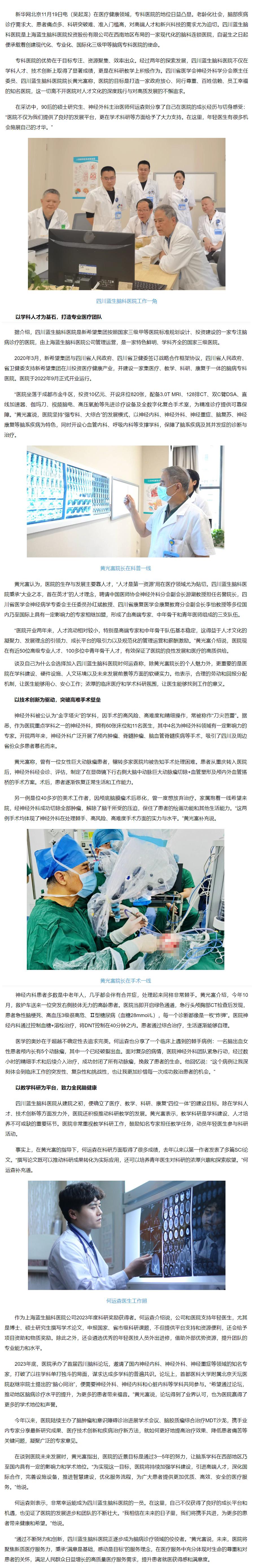 在醫(yī)療健康領(lǐng)域,專科醫(yī)院的地位日益凸顯。老齡化社會,腦部疾病診療需求大、患者痛點多、科研突破難、準(zhǔn)入門檻高,對高端人才和新興科技的需求尤為迫切。四川藍(lán)生腦科醫(yī)院是上海藍(lán)生腦科醫(yī)院投資股份有限公司在西南地區(qū)布局的一家現(xiàn)代化的腦科連鎖醫(yī)院,自誕生之日起便承載著創(chuàng)建現(xiàn)代化、專業(yè)化、國際化三級甲等腦病專科醫(yī)院的使命。