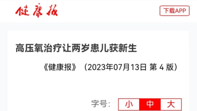 《健康報》:高壓氧治療讓兩歲患兒獲新生