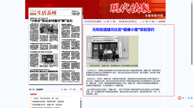 現(xiàn)代快報:元和街道建元社區(qū)“健康小屋”項(xiàng)目簽約
