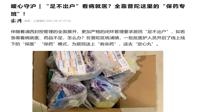 澎湃新聞:“足不出戶”看病就醫(yī)?全靠普陀這里的“保藥專班”!