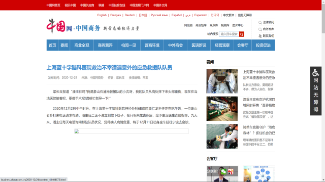 中國網商務:上海藍十字腦科醫院救治不幸遭遇意外的應急救援隊隊員