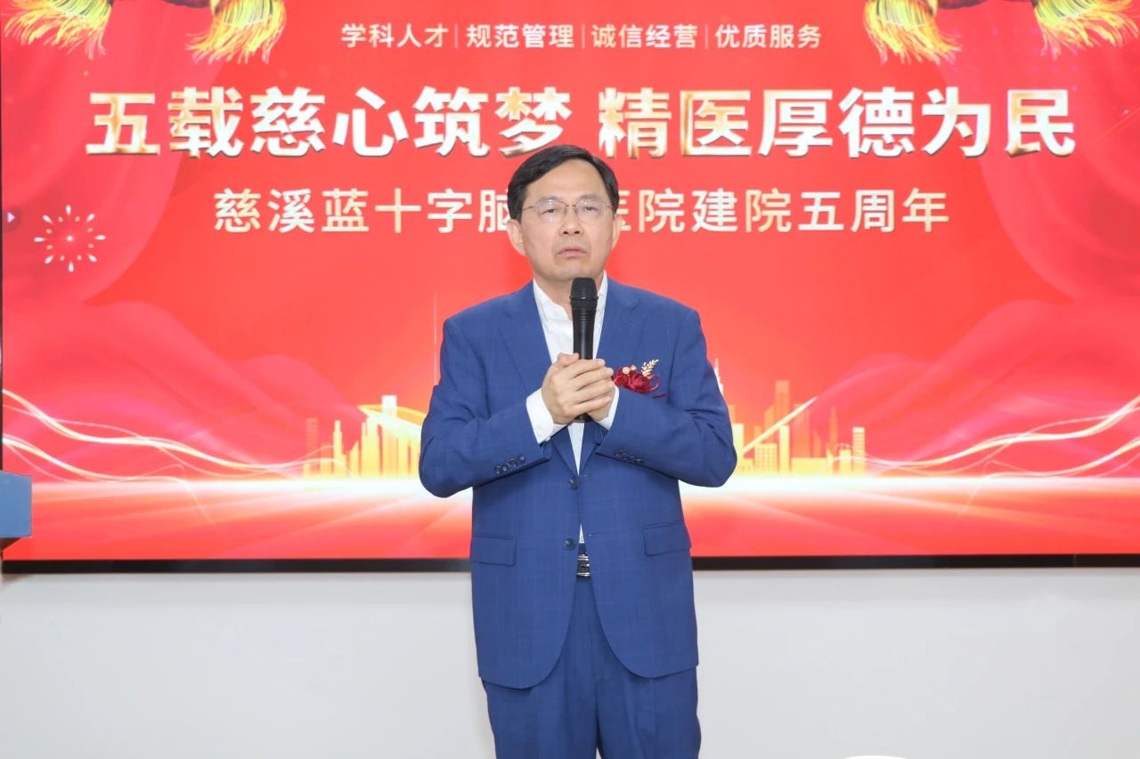 最后,卓立強董事長發(fā)表致辭。他表示,慈溪藍十字腦科醫(yī)院建院五年來,在慈溪市政府部門的正確領(lǐng)導(dǎo)下,在業(yè)界同行的大力幫助下,在當(dāng)?shù)匕傩盏男刨囍С窒拢黜椊ㄔO(shè)取得了長足進步。他希望,醫(yī)院在今后的發(fā)展進程中,要認(rèn)真貫徹國家衛(wèi)生工作方針,嚴(yán)格落實醫(yī)保政策,一切從患者需要出發(fā),自覺踐行“滿意是基礎(chǔ)、感動是目標(biāo)”服務(wù)理念,堅守醫(yī)療初心,恪守醫(yī)療本質(zhì),落實公司高質(zhì)發(fā)展的戰(zhàn)略部署,勵精圖治,奮發(fā)有為,把醫(yī)院建設(shè)成一家“管理精良、文化先進、人才雄厚、技術(shù)精湛、特色鮮明、服務(wù)優(yōu)質(zhì)”、具有獨特區(qū)域品牌優(yōu)勢、受人尊敬的腦科醫(yī)院。