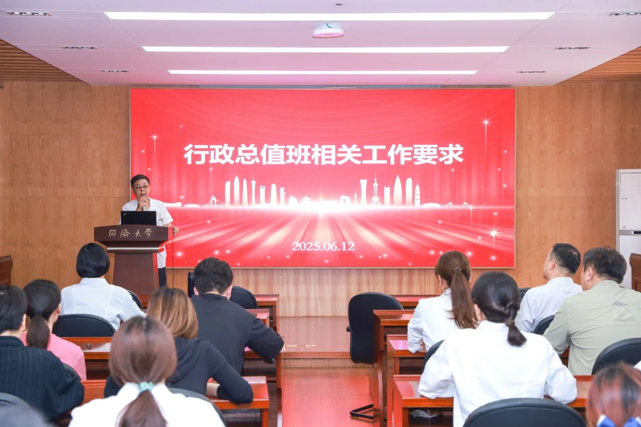 蔡劍飛院長指出,行政總值班人員起到“樞紐”作用,在做好值班值守工作的同時,把總值班工作作為一個很好的平臺,作為個人成長過程中的非常難得的鍛煉機會;要提高獨當一面、綜合協調的能力,善于從總值班的實際工作中總結提煉,持續夯實管理基礎。他希望大家能夠強化責任意識,不斷加強溝通技巧、應急處置等綜合知識的學習,提高各類突發事件的應急處置能力,為保障醫院正常工作秩序作出積極貢獻。
