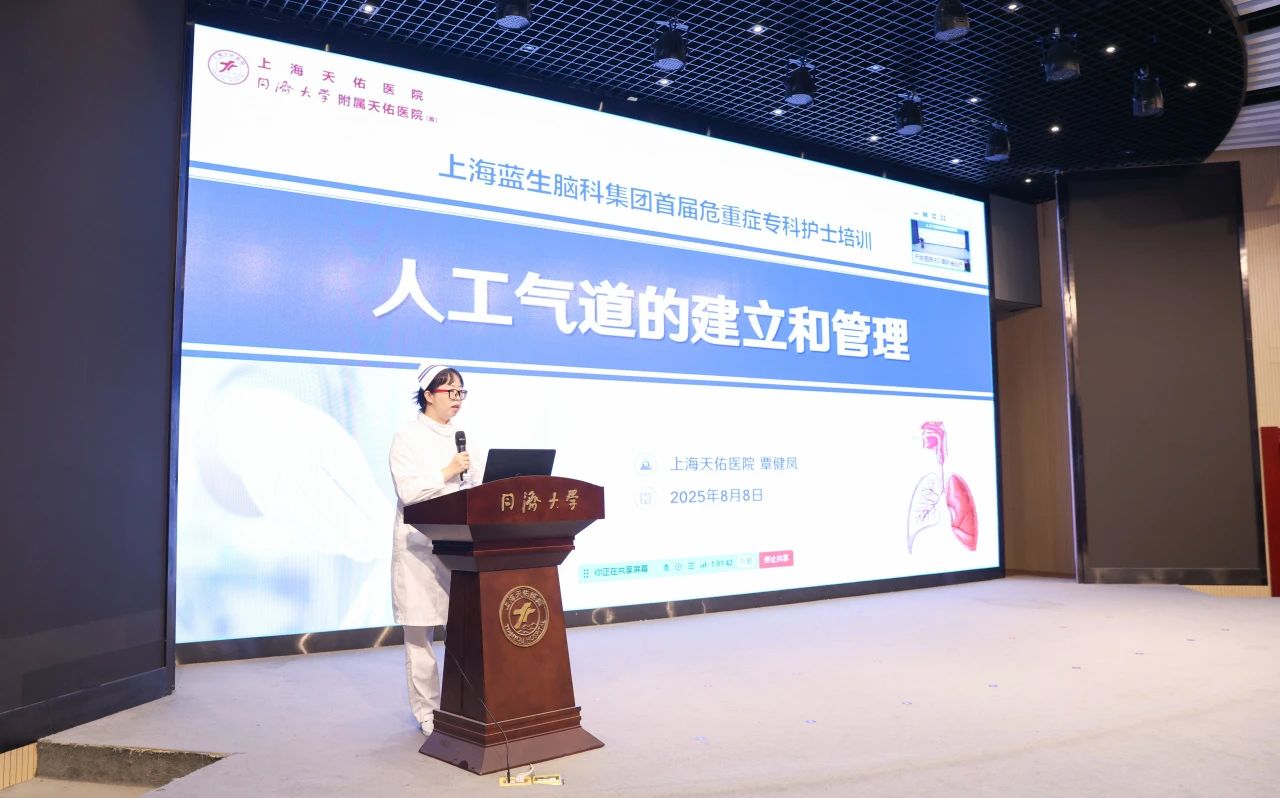 上海天佑醫院覃健鳳總護士長以《人工氣道的建立和管理》為主題,圍繞人工氣道的定義、人工氣道的種類、人工氣道的建立、人工氣道的管理等四個方面進行詳細講解。