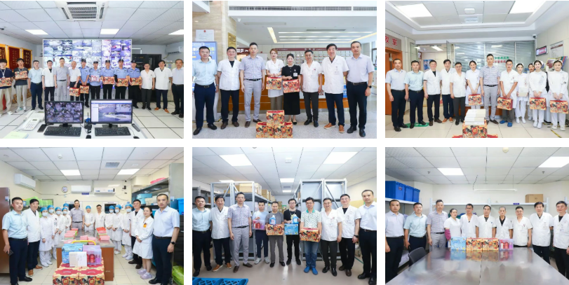 在高溫季,上海天佑醫院住院患者滿員,門急診時常排起長龍。為了讓患者及時就診,保證住院病人安全,醫務工作者們高溫不下“火”線。8月14日,工會發起高溫慰問活動,院領導班子成員分頭下臨床一線,先后到急診、靜配室、門診預檢、司機班、藥庫、保安室等地看望一線工作人員,并送上慰問品。