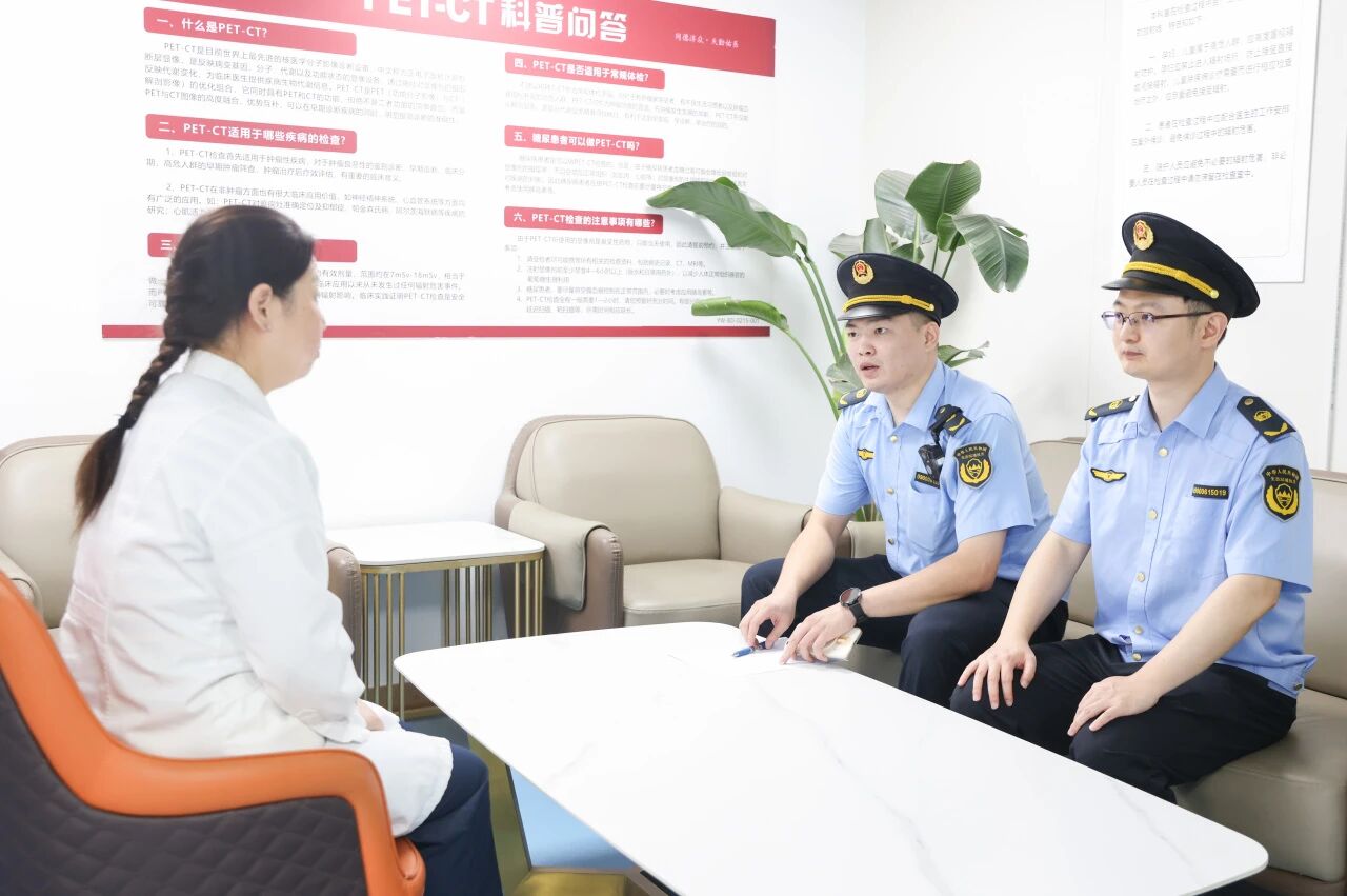 普陀區疾控中心(區衛監所)應急處置人員向PET-CT室工作人員調查了解現場人員受輻射影響情況,并及時向上級部門報告現場情況。