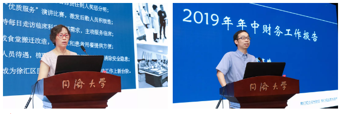 同濟大學附屬天佑醫院蔡劍飛院長匯報工作。上半年,門診改革成效明顯,“155”學科建設計劃扎實推進,人才優化取得突破,引進科主任8人,護士長7人。合作共建取得進展,上海天佑醫院骨關節炎醫聯體成立,上海疼痛聯盟天佑醫院會診中心成立運行,桃浦醫心“健康小屋”順利開展。業務發展有后勁,優質服務百日競賽活動有聲有色開展,員工滿意工程建設持續開展,開通長三角地區跨省異地就醫門診費用直接結算,疼痛科、NICU業務順利開展,放療科等獲得審批。