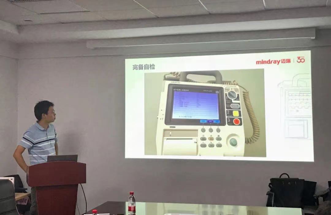 邁瑞醫療高級工程師李家麟、譚嘉亮、呂俊豪分別就急救類除顫儀、監護儀等設備使用原理、注意事項進行講授,并現場演示設備故障診斷排除。