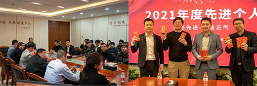 會議還評選表彰了2021年度先進個人。劉軼永總經理為獲獎人員頒獎并合影留念。