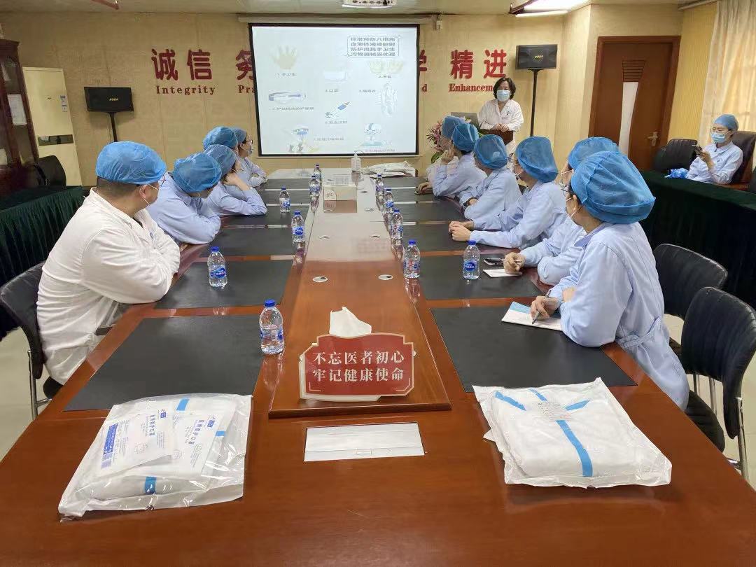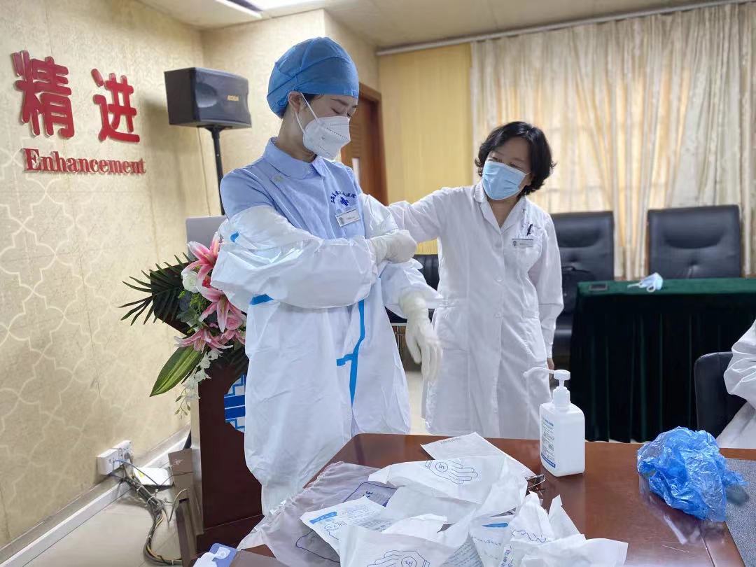 當天下午,護理部主任楊麗萍為隊員們準備防護物資,指導工作方案,開展防控培訓,確保操作流程標準、高效,防護到位。