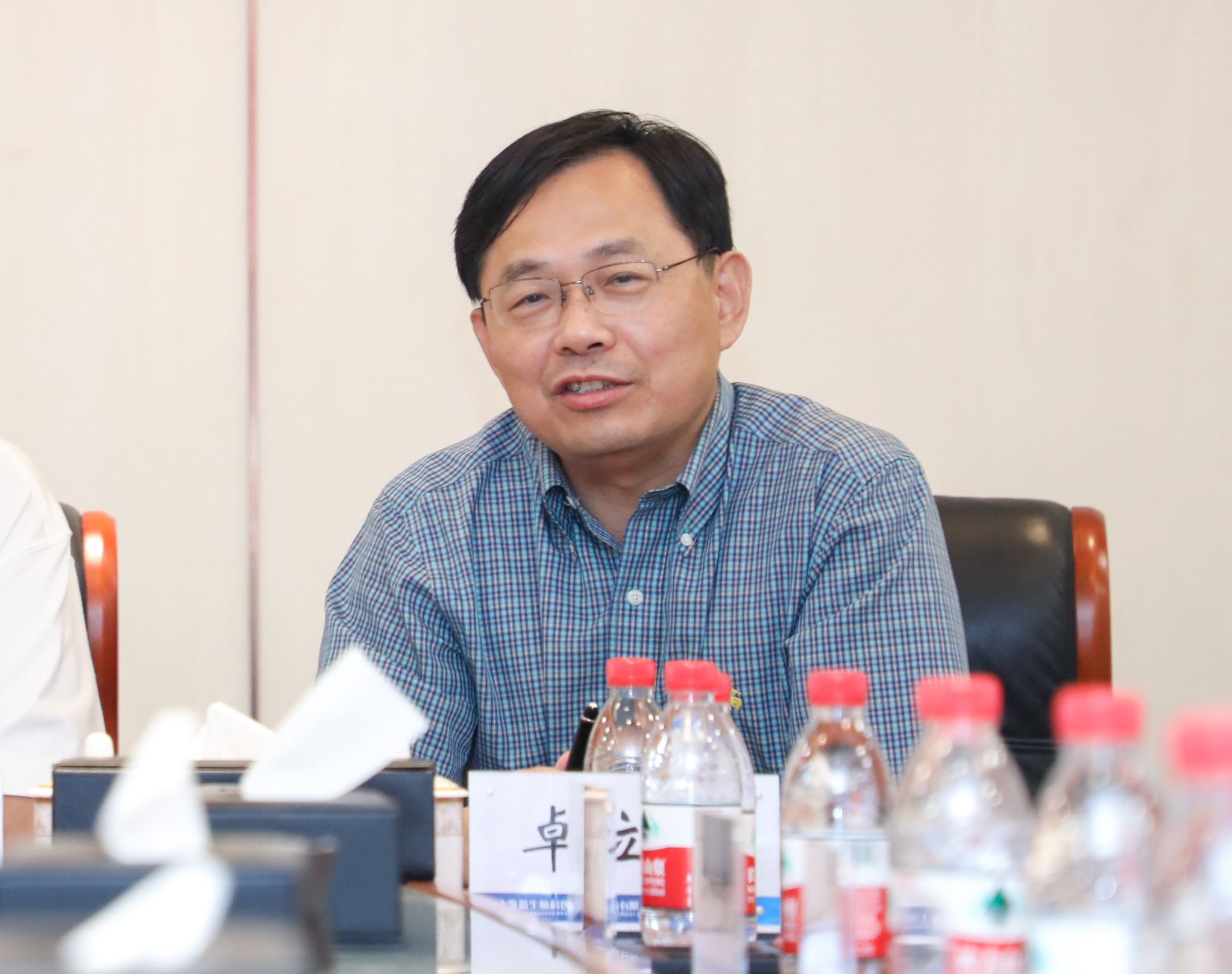 在行政會議室,劉永好董事長聽取了公司卓立強董事長對醫院發展的近期要求和醫院徐必生院長、劉金爐總經理的工作匯報。