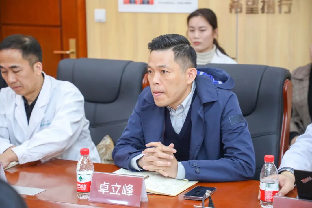 卓立峰總經理代表醫院對醫保局領導的蒞臨指導表示熱烈歡迎,他說,天佑醫院經歷了三年新冠疫情的大考,未來將繼續掌握好社會效益與經濟效益的平衡,全力做好醫療救治工作,切實保障患者醫療需求。