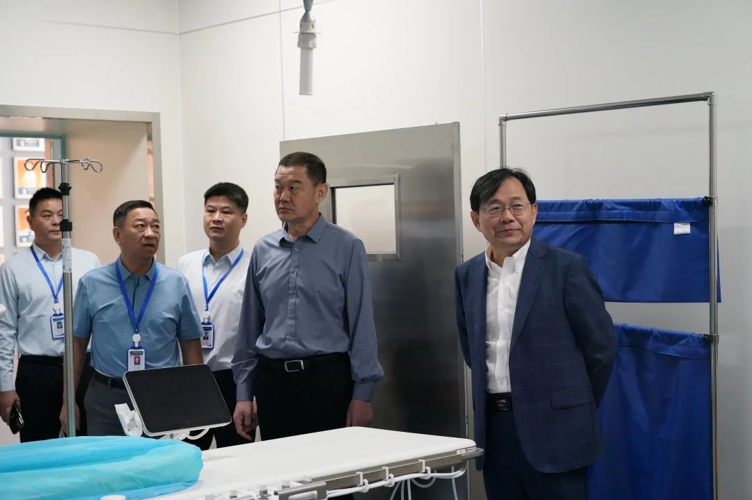 13日上午10點,卓立強董事長一行抵達深圳藍生腦科醫院。在院領導班子的陪同下,董事長一行對醫院正門、院區停車場、高壓氧艙、DSA手術室、專家介紹欄等區域進行了調研和指導。