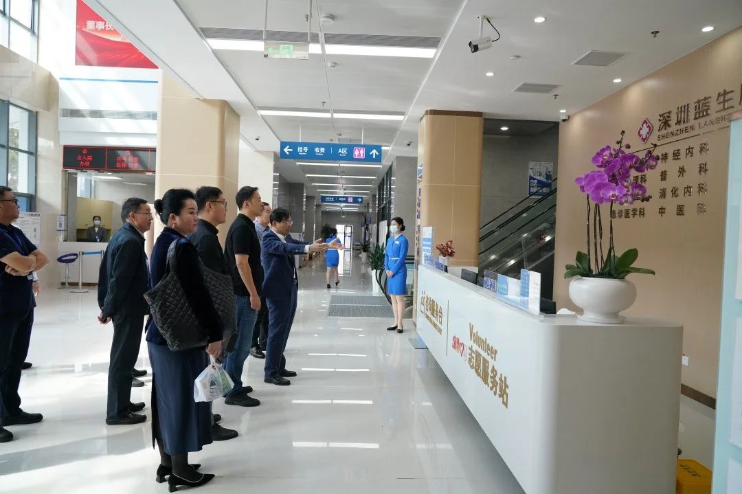 為推動醫院發展規劃高效落實、促進醫院工作走上新臺階,11月13日,上海藍生腦科醫院投資股份有限公司董事長卓立強、常務副總裁劉詩強、副總裁霍華祎等一行領導蒞臨深圳藍生腦科醫院調研指導工作,總顧問江捍平、院長劉長續、總經理程子昊等醫院領導班子全程陪同。