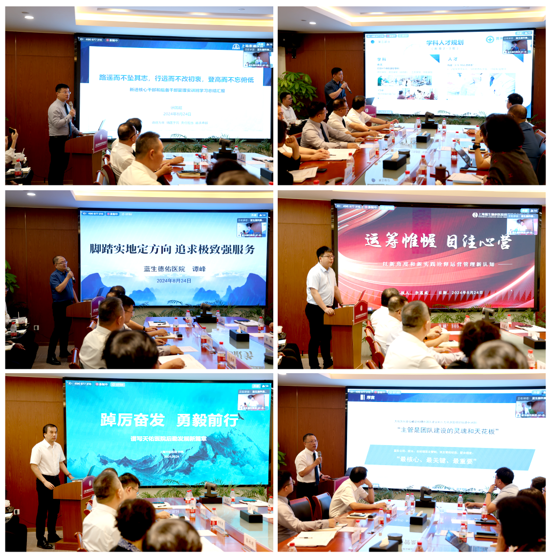 根據課程設置安排,先后有8位老師為《實訓班》授課。公司總經理劉軼永以《學科建設與高質發展的幾點思考》為題,闡述了什么是學科建設、為何抓學科建設、如何抓學科建設。公司副總裁、上海藍十字腦科醫院院長項耀鈞,公司副總裁、上海天佑醫院院長蔡劍飛,公司副總裁葉文琴、黃曉梅,上海天佑醫院總經理卓立峰,上海藍生健康科技公司總經理卓子濱等領導也先后為《實訓班》授課。