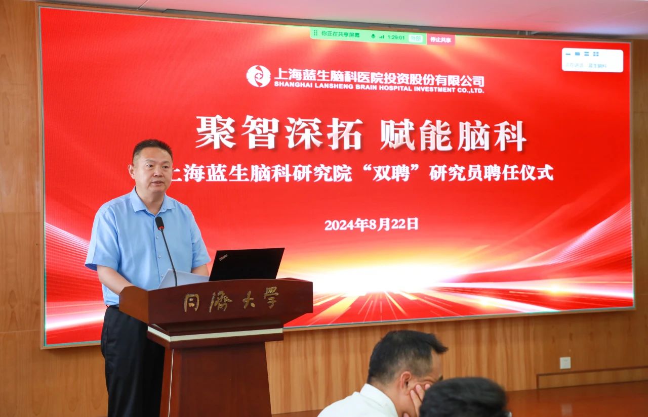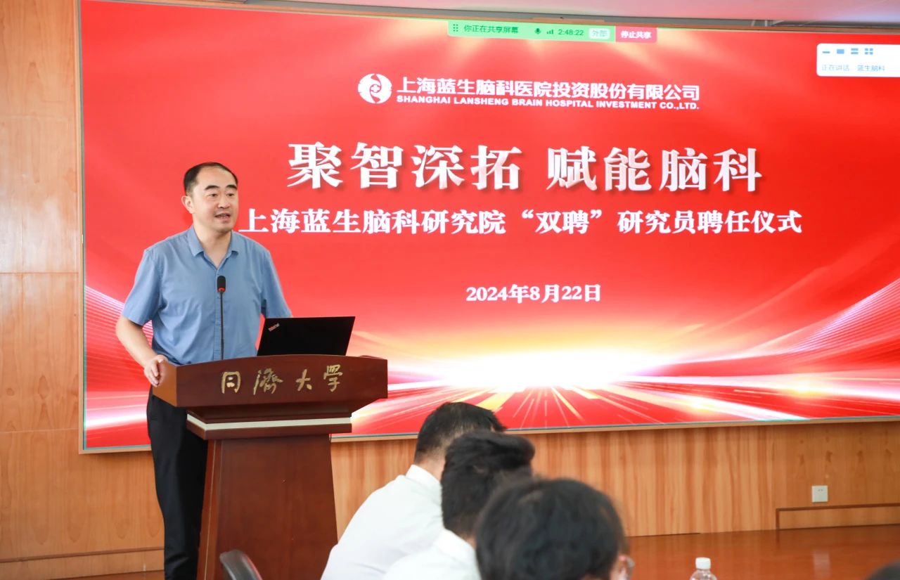 8月22日,公司在同濟大學附屬天佑醫(yī)院舉行“雙聘”研究員聘任儀式,標志著公司實質(zhì)性轉向“臨床+科研”雙輪驅(qū)動發(fā)展模式。公司旗下醫(yī)院“雙聘”研究員、科研工作分管領導和部門負責人通過線上線下結合的形式參加。藍生腦科研究院執(zhí)行院長殷作明博士主持。