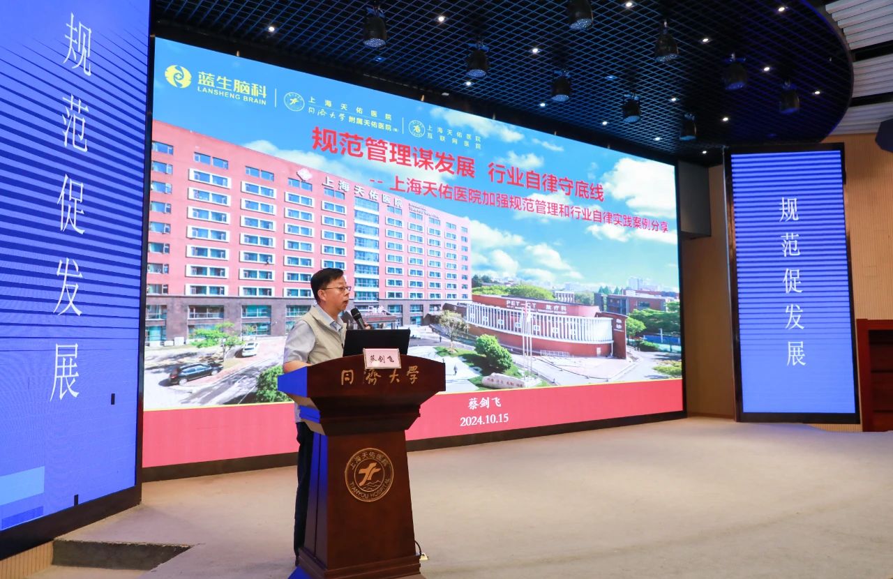 上海天佑醫院蔡劍飛院長以《規范管理謀發展,行業自律守底線》為主題,分享了天佑醫院在加強規范管理和行業自律方面的實踐經驗,從“堅持規范守底線,誠信經營保安全;學科人才壯實力,優質服務增內涵;社會公益得民心,責任擔當講奉獻”三個維度介紹了天佑醫院的具體做法與體會。