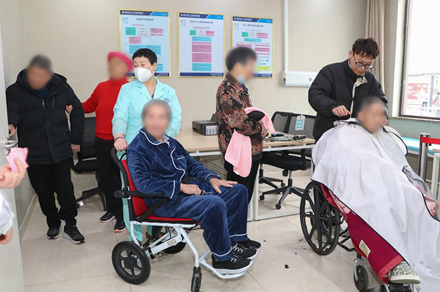 慈溪藍十字腦科醫院聯合地球村美發志愿團隊來到醫院,開展“愛心義剪”活動。志愿者們分成兩組,一組在臨時診室提供免費理發服務,一組深入重癥康復病房開展床旁服務。短短一個上午,志愿者為 32 位人員完成理發。