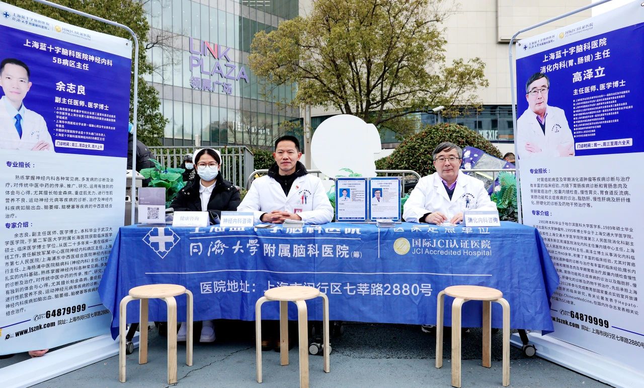上海藍十字腦科醫院志愿服務隊應邀赴七寶領展廣場新就業群體黨群服務站,助力七寶鎮綜合黨委聯合鎮黨群中心、鎮總工會主辦的“弘揚雷鋒精神 致敬城市奔跑者——七寶鎮暖‘新’同行公益集市”志愿服務活動,為新就業群體及周邊居民提供健康咨詢、免費義診等服務。