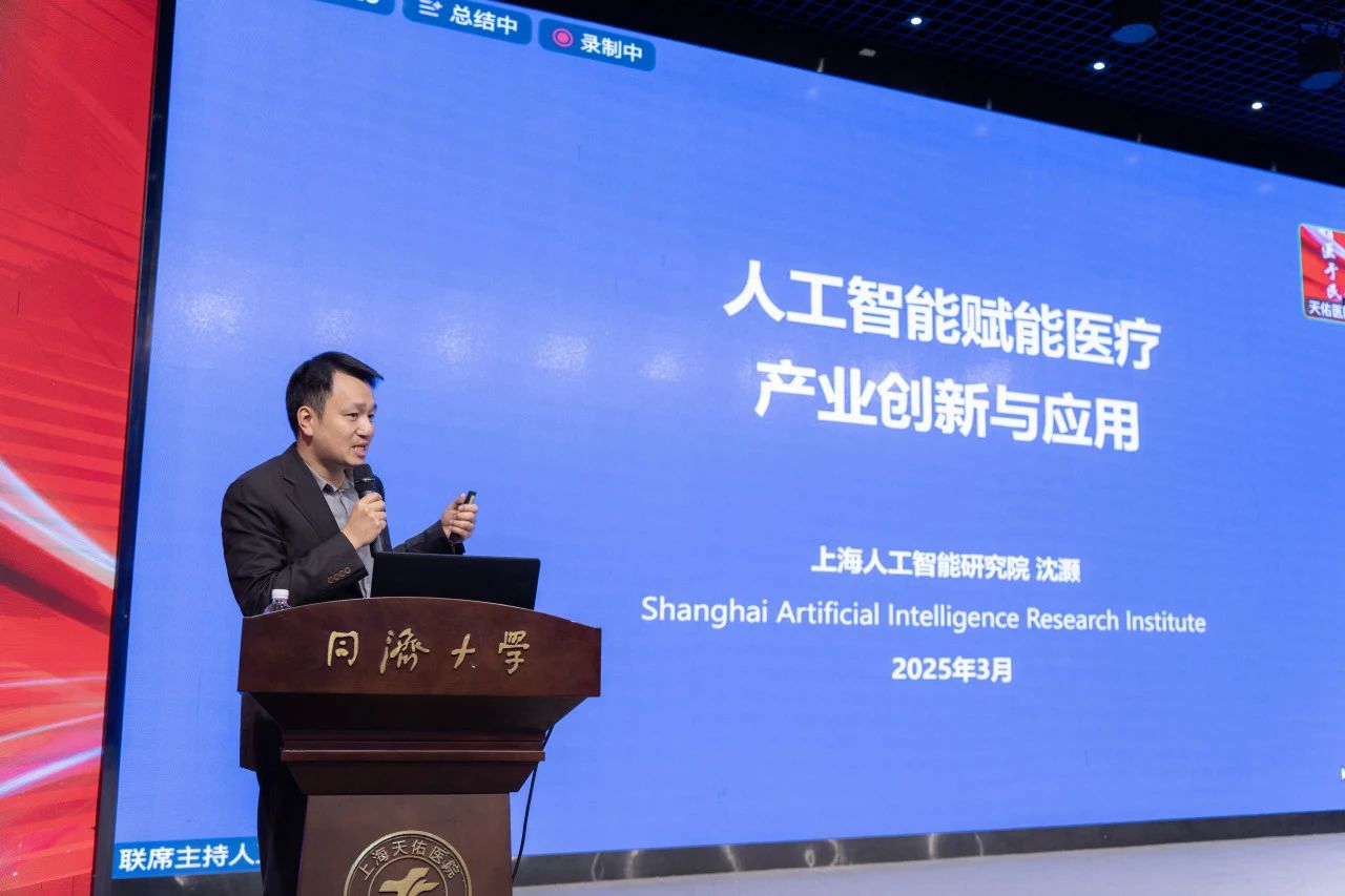 沈灝博士從人工智能的發(fā)展背景、技術(shù)研究、賦能醫(yī)療、醫(yī)工交叉探索實踐、應(yīng)用轉(zhuǎn)化以及前景展望六個方面進行了系統(tǒng)深入地講解。他認為,人工智能作為第四次科技革命的核心驅(qū)動力,正引領(lǐng)全球經(jīng)濟社會的深刻變革,如今在大數(shù)據(jù)、算力和算法的綜合推動下已進入深度學(xué)習(xí)與大模型時代,為醫(yī)療產(chǎn)業(yè)創(chuàng)新發(fā)展提供了前所未有的機遇。他指出,人工智能在醫(yī)療領(lǐng)域的應(yīng)用前景廣闊,涵蓋了醫(yī)療影像診斷、新藥研發(fā)、個性化治療、健康管理等多個方面,特別是在醫(yī)學(xué)咨詢、臨床決策、新藥研發(fā)等方面展現(xiàn)出的潛力讓人驚艷。同時醫(yī)工交叉的不斷深化,推動了醫(yī)療機器人、智能康復(fù)設(shè)備等創(chuàng)新成果的涌現(xiàn),為醫(yī)療產(chǎn)業(yè)的智能化升級提供了有力支撐。他呼吁,面對人工智能帶來的機遇與挑戰(zhàn),醫(yī)療行業(yè)應(yīng)加強跨學(xué)科合作,加速技術(shù)轉(zhuǎn)化與應(yīng)用落地,同時關(guān)注數(shù)據(jù)安全、倫理道德等問題,確保人工智能技術(shù)在醫(yī)療領(lǐng)域的可持續(xù)發(fā)展,為人類健康事業(yè)創(chuàng)造更大價值。
