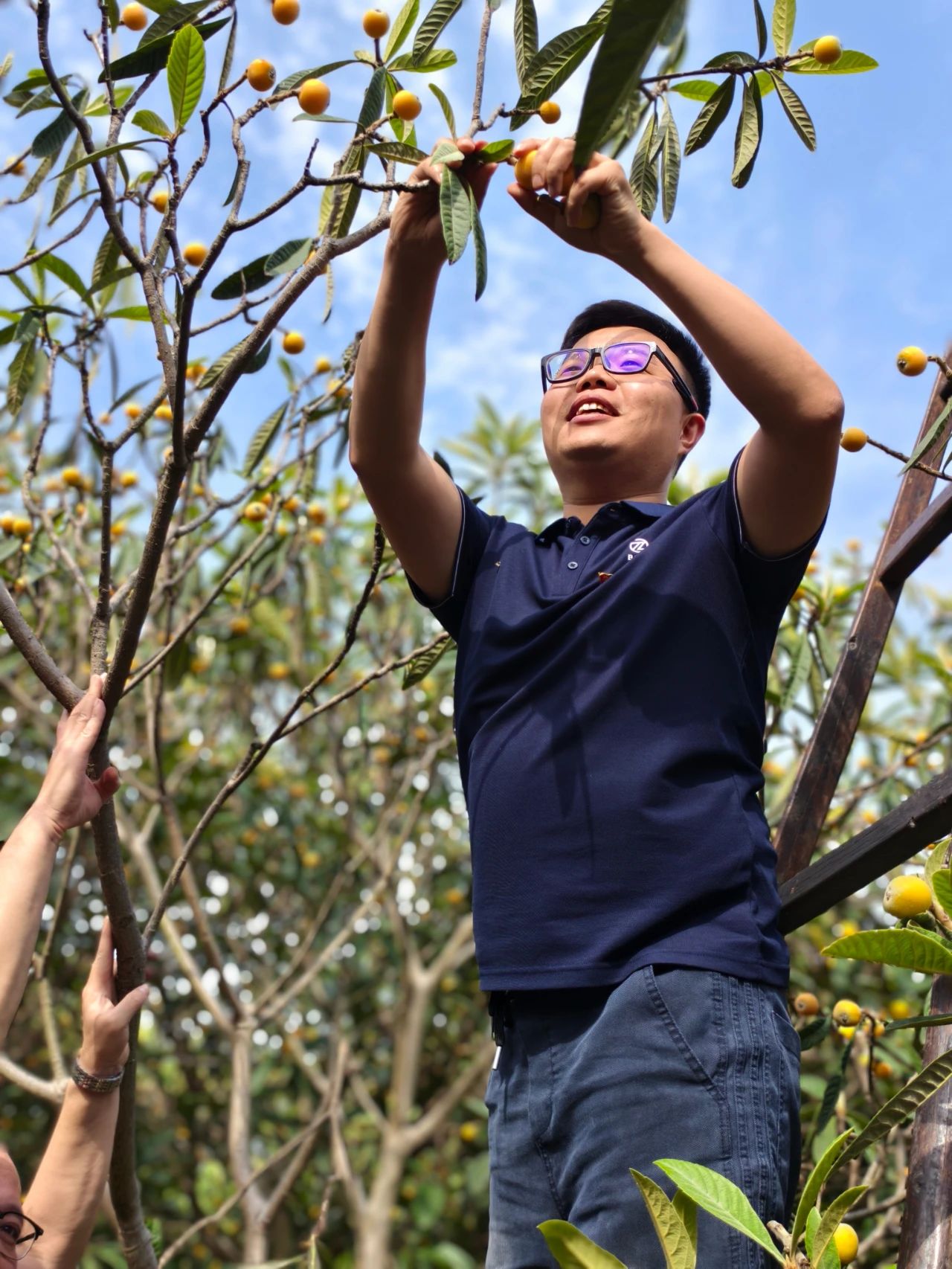穿行在蔥郁的果林中,枝頭墜滿金燦燦的枇杷,宛如璀璨寶石,于翠綠葉片間閃爍著迷人光澤。大家紛紛挽起衣袖,躬身投入勞作,在親身體驗中感受耕耘的艱辛,分享豐收喜悅,重溫艱苦奮斗傳統。