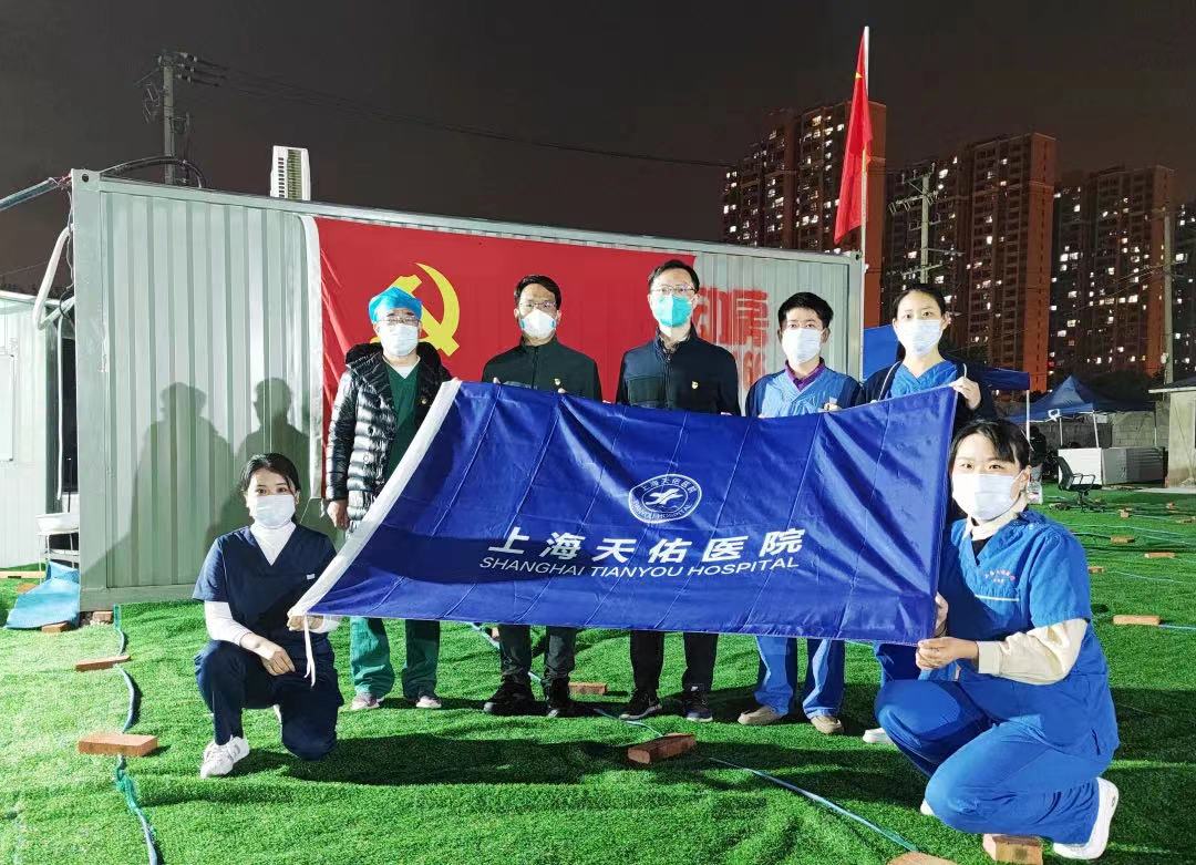 4月21日晚八點(diǎn)半,普陀區(qū)連亮路方艙醫(yī)院外場(chǎng)地上,黨旗在春天的夜空下飄揚(yáng),天佑醫(yī)院方艙醫(yī)療隊(duì)員們手托院旗,站在黨旗前準(zhǔn)備接受一次“特殊的洗禮”——方艙醫(yī)院臨時(shí)黨支部正在為天佑醫(yī)療隊(duì)三位隊(duì)員舉辦“集體遞交入黨申請(qǐng)書”儀式。