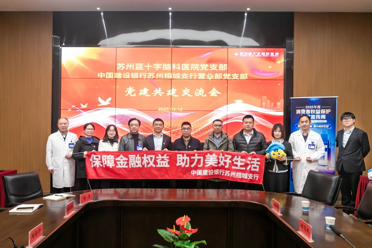 為充分發揮黨建引領作用,深化“銀醫”合作,促進黨建工作與業務發展深度融合,2025年3月12日下午,蘇州藍十字腦科醫院與中國建設銀行蘇州相城支行營業部舉行黨建共建交流會,雙方以黨建為引領,開啟資源共享、優勢互補、共同發展的嶄新征程。