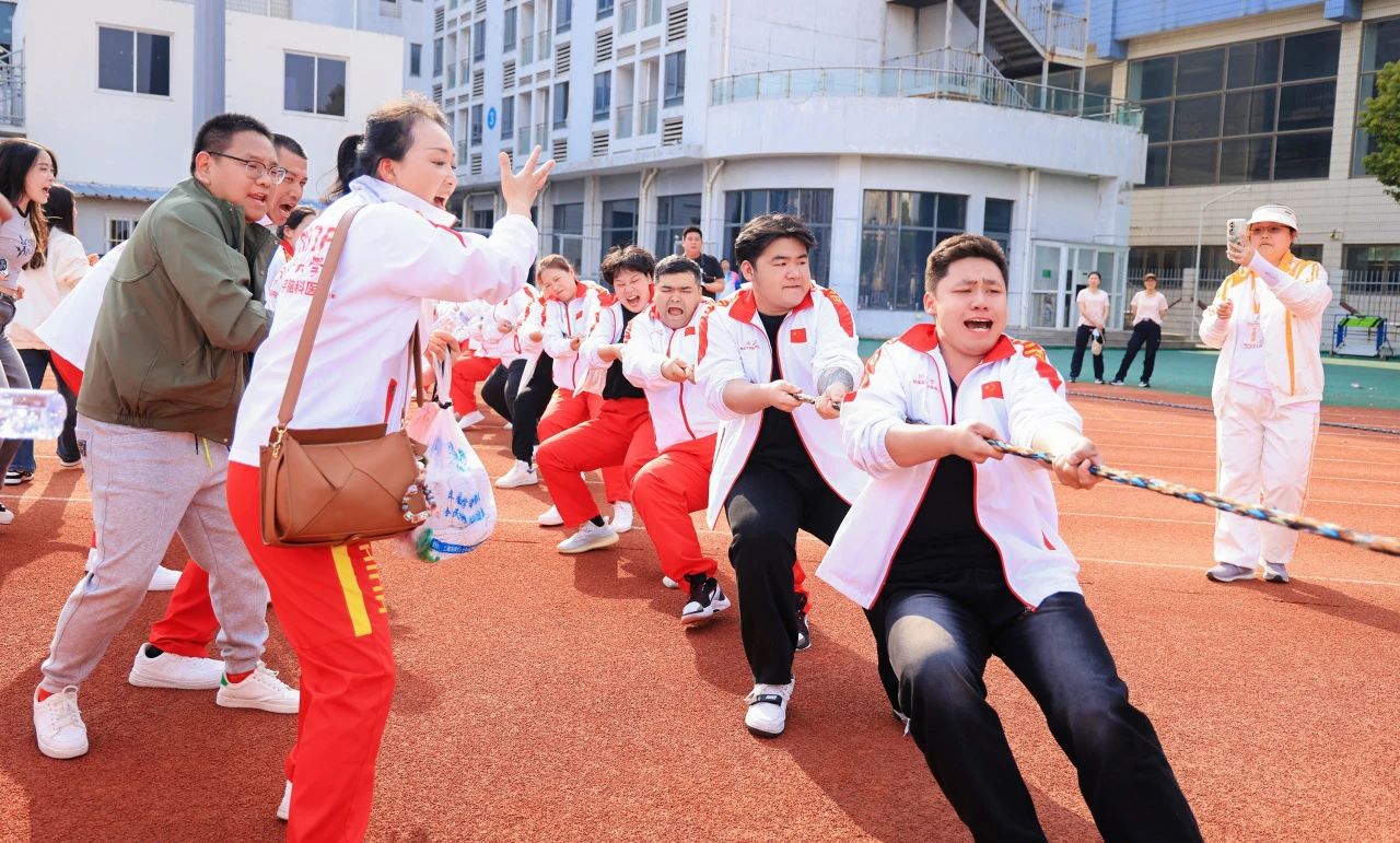 “3、2、1——拉!”“189個、190個!”在另一邊的賽場上,集體拔河、集體跳繩以及鴻運彩球比賽相繼開展,運動員們分配好體力、把握好節奏、運用好巧勁,紛紛勇爭上游,運動場上的這一根根“粗麻繩”和“細長繩”,將運動與健康緊密聯結在一起。