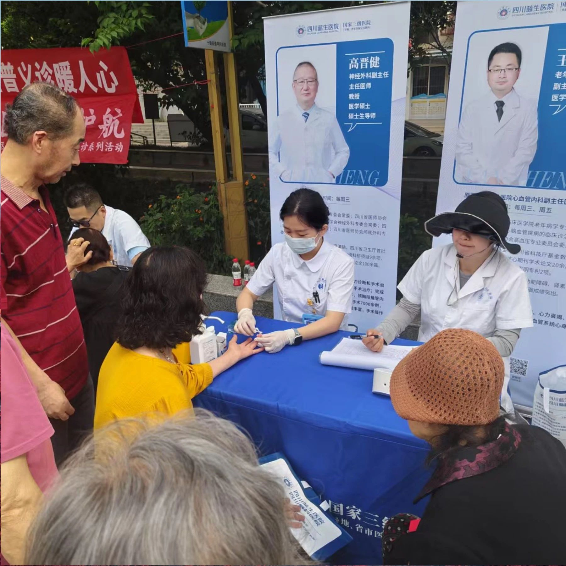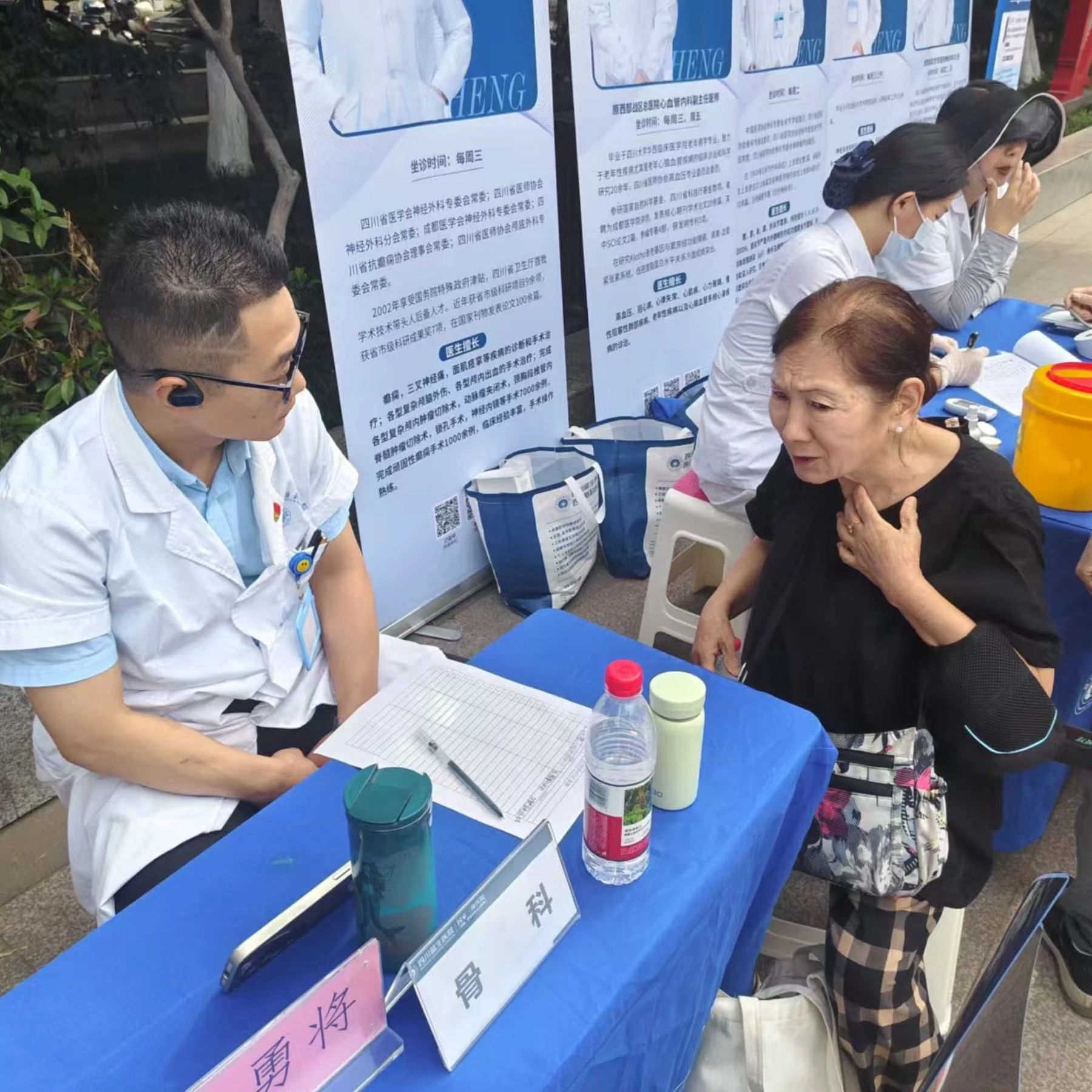 本次義診活動以“健康社區齊共建 科普義診暖人心”為主題,整合優質醫療資源,形成多級聯動服務模式。四川藍生腦科醫院派出神經外科、神經內科、老年醫學科、康復醫學科、骨科等領域專家團隊,為居民提供疾病咨詢、健康評估及個性化診療建議;華川社區衛生服務中心則依托家庭醫生簽約服務體系,重點開展血壓、血糖檢測等基礎疾病篩查,并為慢病患者建立健康檔案,推動“早篩查、早干預”的疾病防控理念落地。活動現場井然有序,專家們耐心解答居民疑問,針對常見病、多發病進行科普宣教,獲得社區居民一致好評。