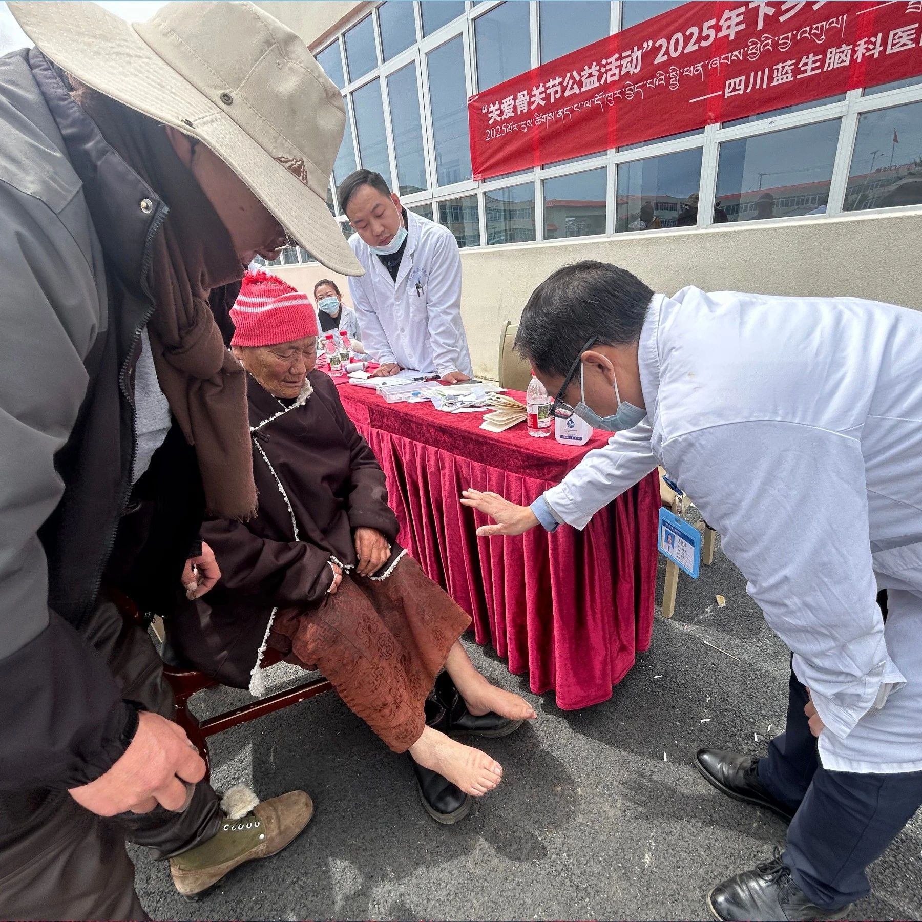 為積極踐行社會責任,傳遞醫療關懷,5月16日,四川藍生腦科醫院攜手紅原縣瓦切鎮衛生院,發起關愛骨關節公益活動。此次義診覆蓋瓦切鎮、色地鎮、麥洼鄉等多個地區,旨在突破地理阻隔,將優質醫療資源精準輸送至藏區深處,為飽受病痛折磨的居民點亮健康曙光。