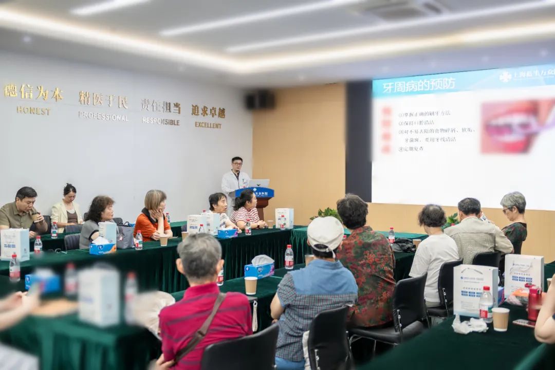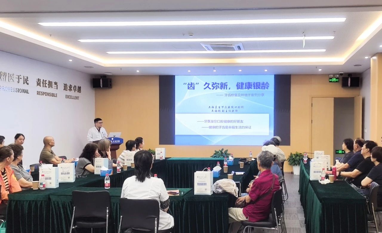 座談會上,口腔科吳海鵬副主任醫師以“‘齒’久彌新,健康銀齡”為主題,開展了一場關于口腔健康與牙齒修復科普講座。吳主任詳細介紹了老年人常見口腔問題,如齲齒、楔狀缺損、牙周病、缺失牙等,以及口腔健康對全身健康的影響。并通過一個個典型病例,向大家深入解析牙齒修復、種植牙病例的方案設計,破除了“老掉牙是自然現象”“殘根不要拔”等認知誤區,既滿足專業嚴謹性要求,又保留了科普傳播的感染力。講座緊扣“口腔健康,全身健康”理念,強調定期口腔檢查與科學防治對提升老年生活質量的核心價值,引導老年人建立主動干預意識。