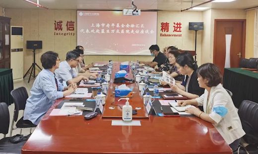 在喜迎國慶節和黨的二十大召開之際,9月23日下午,重陽節來臨前夕,上海市老年基金會徐匯區代表處會長彭秋萍,徐匯區醫療保障局黨組書記、局長陳艷,區衛生健康工作黨委副書記呂娜,區民政局黨組成員、副局長張蓉等一行領導蒞臨上海藍生萬眾醫院走訪座談,醫院黨支部書記兼總經理徐筱林、院長韓建新陪同座談。