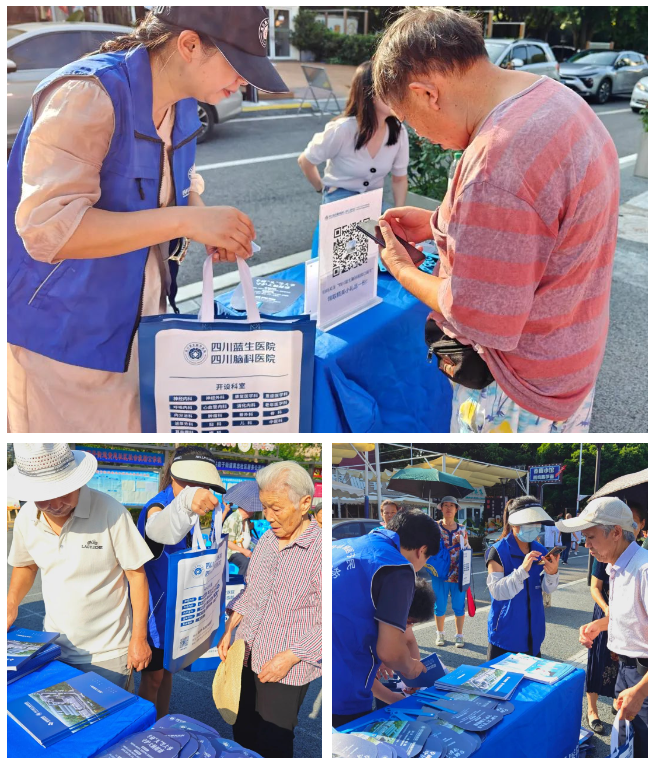 隨著活動的結束,義診咨詢環節正式開始。四川藍生腦科醫院的神經內科、心身醫學科、康復醫學科以及黃忠社區衛生服務中心的專家們共同為居民提供了專業的義診服務。他們耐心細致地為居民解答疑問,進行初步篩查與診斷,并提供了個性化的健康建議與指導。同時,專家們還特別關注患者及家屬的心理需求,為他們提供了專業的心理咨詢與情感支持,幫助他們更好地應對疾病帶來的挑戰與壓力。