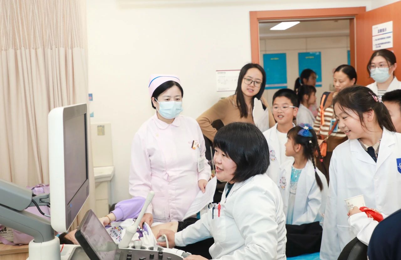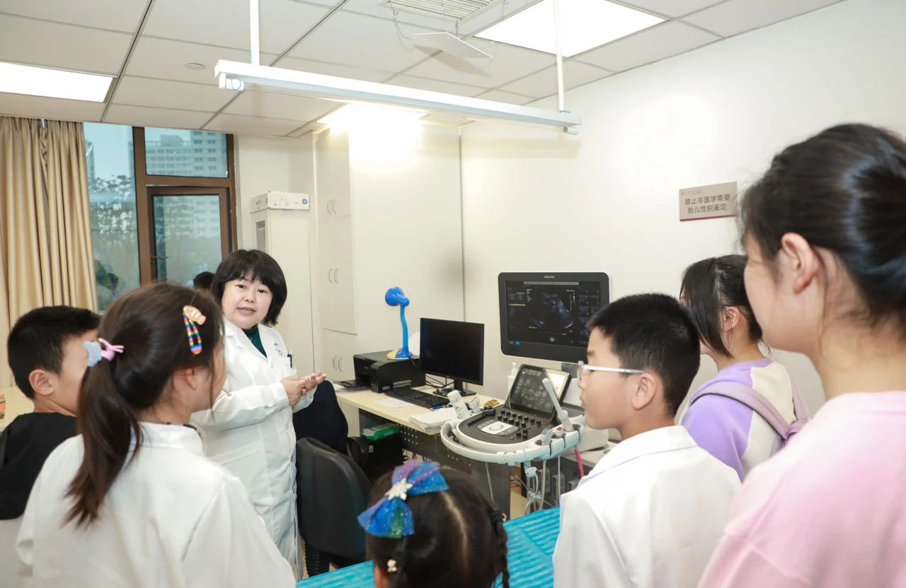 “這些粘稠的液體是什么呀?”在超聲科診室里,小醫(yī)生們好奇地向韓秀清醫(yī)生發(fā)問。“這是醫(yī)用超聲耦合劑,在檢查時能減少干擾,讓超聲成像更清晰,且對身體是無害的。”韓醫(yī)生一邊解釋,一邊為孩子們展示了腹部、心臟和頸部血管的彩超檢查。