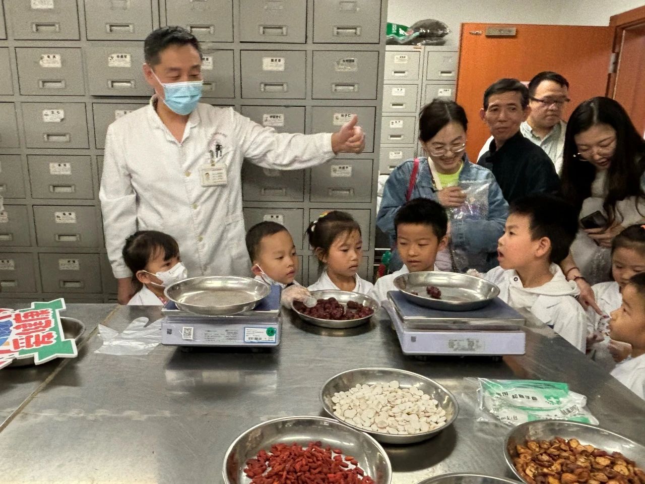 在中藥房,田韶波藥師已經(jīng)準備好了各種藥材等著大家。“你們知道這是什么藥材嗎?”田藥師手里拿著藥材問道。“我知道,這是山楂。”“這是麥芽。”小醫(yī)生們熟練地說出了好幾種藥材的名字,聽到小朋友們的搶答,田藥師連連夸贊。在田藥師的指導下,小醫(yī)生們通過觸覺、嗅覺與視覺相結(jié)合的方式加深了對中藥的認識,還親手稱重、分裝,體驗了一把藥師的工作。