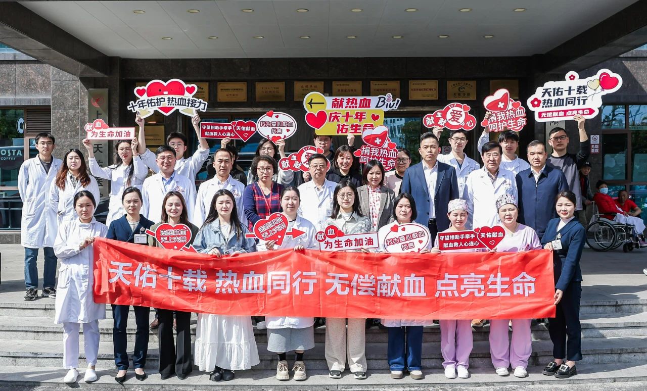 市血液中心黨委副書記、紀委書記聶曉絢,獻血服務部部長孟妍,天佑醫院蔡劍飛院長、卓立峰總經理等院領導親臨現場,為志愿者們送上溫暖的問候。蔡院長表示:“天佑十年,我們每一位員工都對生命有著格外深刻的領悟,愿用熱血點燃他人生命之光。”正如蔡院長講的那樣,天佑醫院建院以來,每年都組織醫務工作者無償獻血。自2020年起將5月20日定為“天佑無償獻血日”,至今已連續6年共有350余名人員參與獻血,獻血量達7萬余毫升。